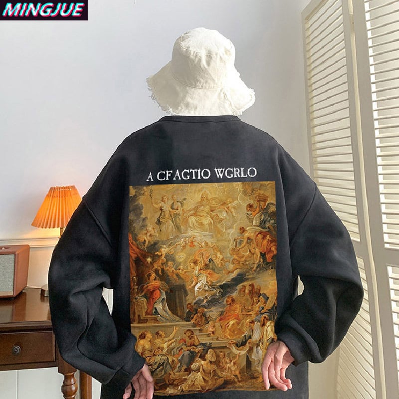 【高墣シリーズ】★トップス★ 5color スウェット 男女兼用 メンズ 油絵風 可愛い グリーン ブラック ベージュ ブラウン ピンク