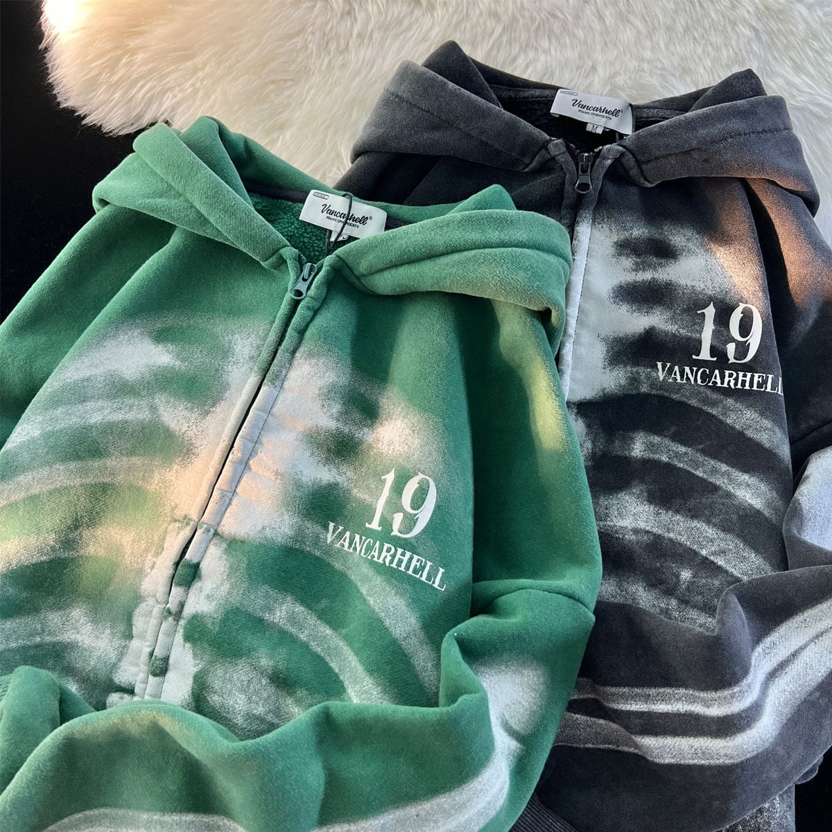 【薇芭妮シリーズ】★裏起毛 パーカー★ 2color トップス 男女兼用 メンズ 黒灰色 グリーン ドクロ 髑髏
