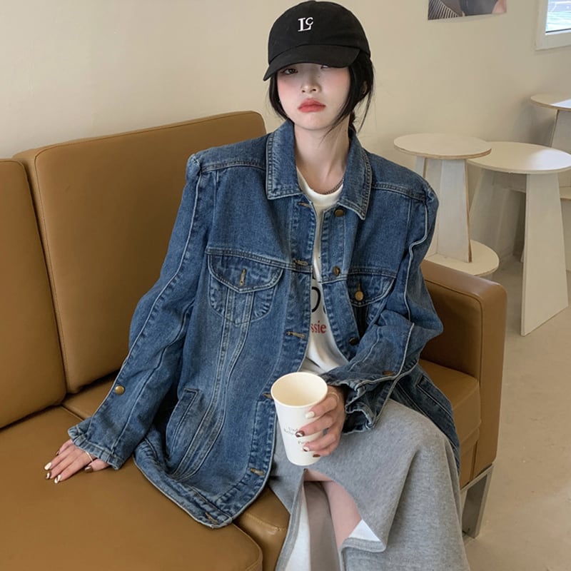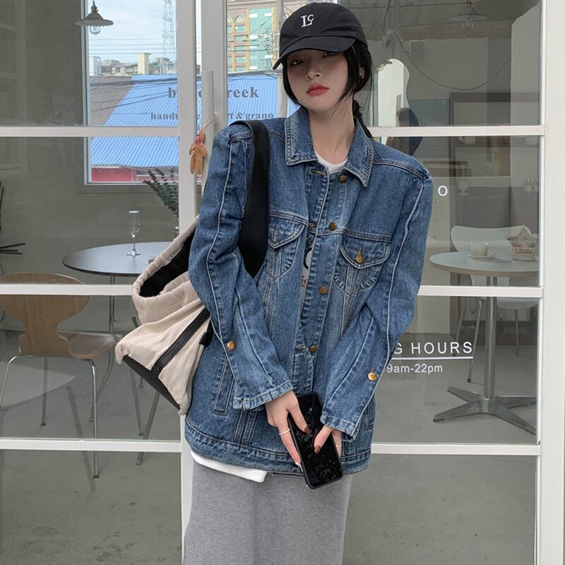 【KEKELIシリーズ】★デニムジャケット★ アウター 春服 レトロ ゆったり 合わせやすい ブルー 青い