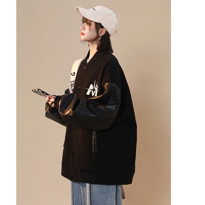 【FKZシリーズ】★ジャケット★ スタジャン 男女兼用 メンズ 配色 ブラック 黒い 春服 かっこいい M L XL 2XL 3XL