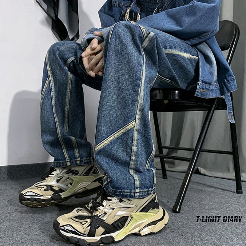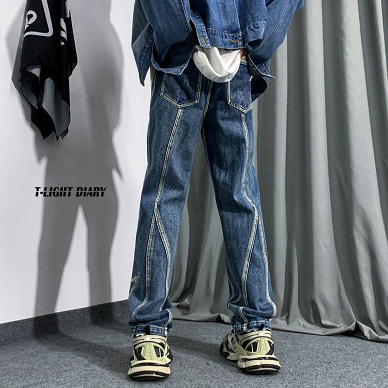 【YOULINシリーズ】★デニムパンツ★ 2color ボトムス ズボン 男女兼用 メンズ 大きいサイズ 青 黒