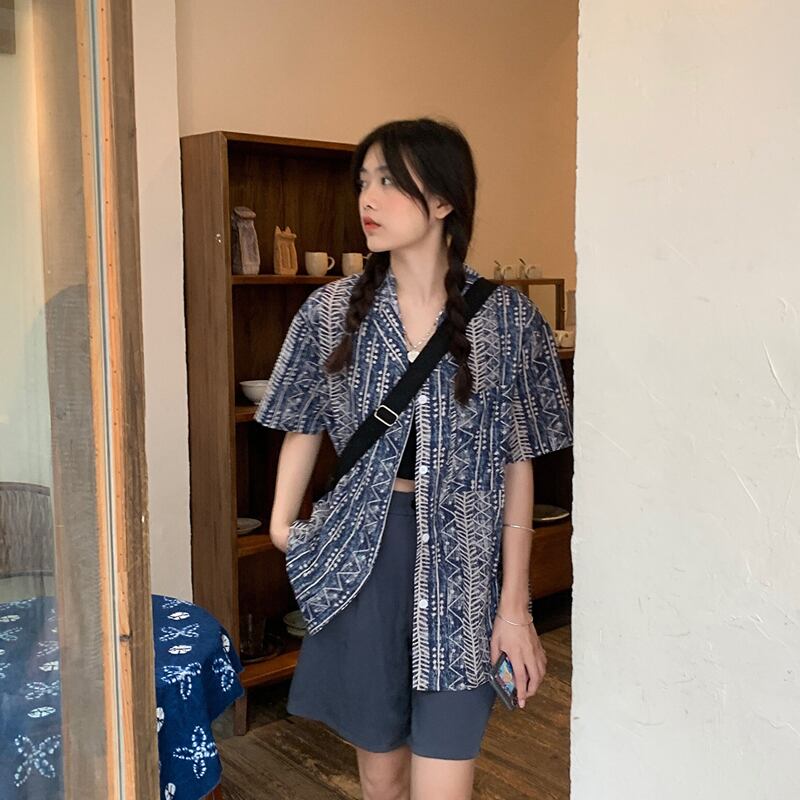 【YOUZIシリーズ】★レトロ シャツ★ 半袖シャツ トップス プリント レトロ S M L XL 薄い 夏服 激安 S M L XL