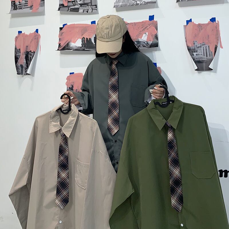 【MGJMシリーズ】★ネクタイ付きシャツ★ 5color シャツ 男女兼用 メンズ 長袖シャツ カジュアル 合わせやすい