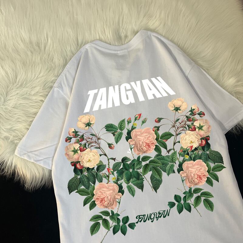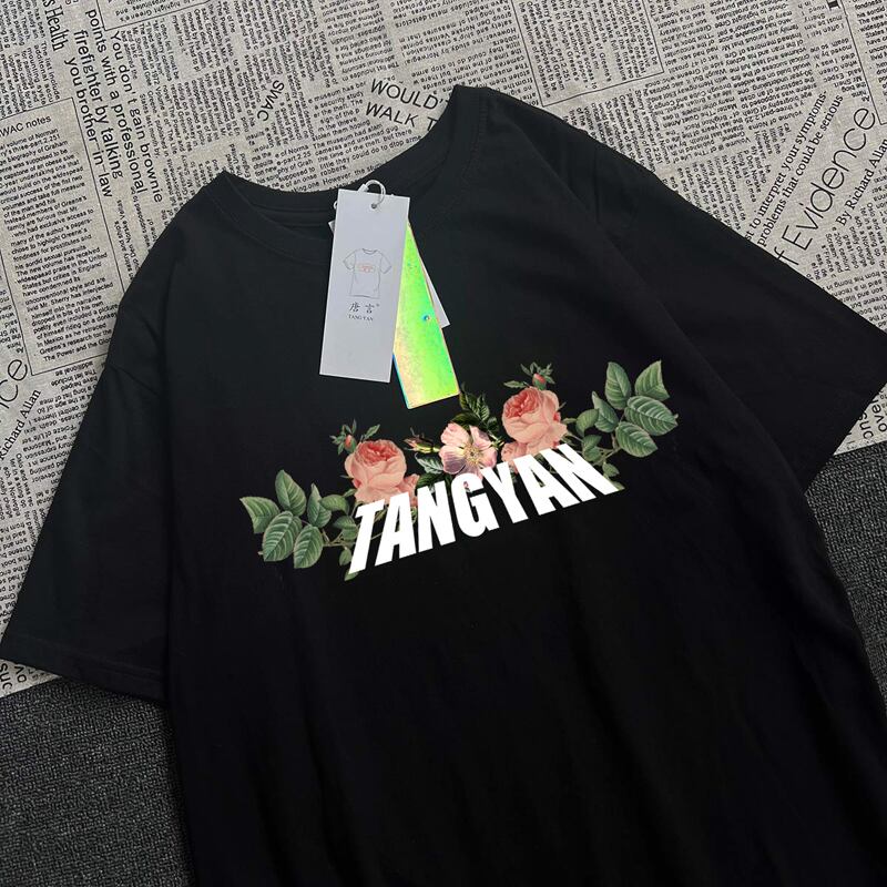 【TANGYANシリーズ】★Tシャツ★ 2color トップス 男女兼用 メンズ 大きいサイズ 黒 白 花柄 合わせやすい