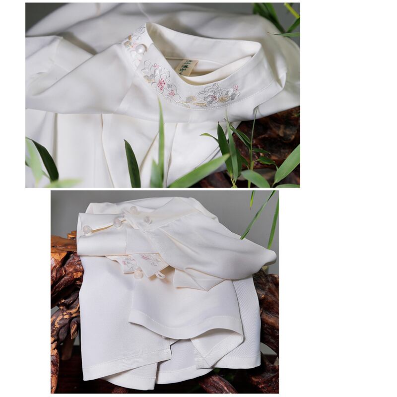 【清水溪---梨花綰シリーズ】★チャイナ風シャツ★ チャイナ風トップス チャイナ服 S M L XL 白 文芸スタイル