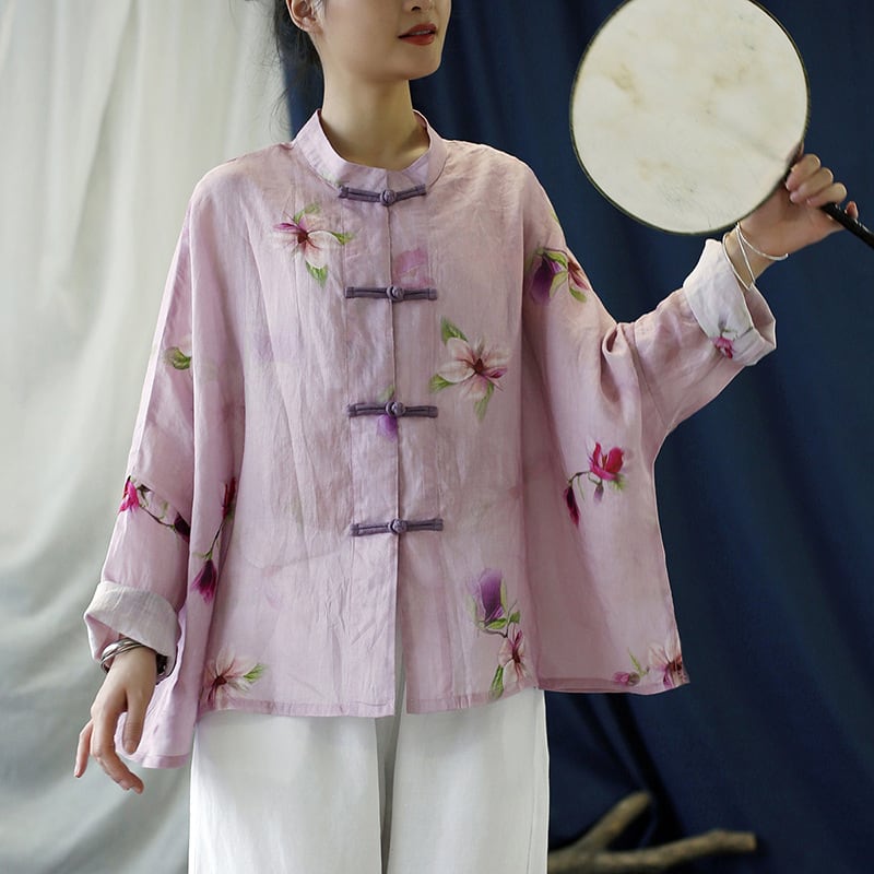 【LINASHANGシリーズ】★チャイナ風トップス★ 3color シャツ 気質アップ 改良唐装 ゆったり プリント