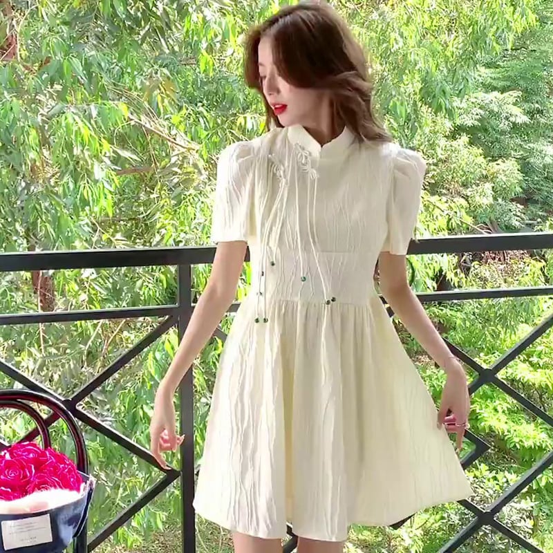 【LINXIAOXIANシリーズ】★チャイナ風ワンピース★ 改良型チャイナドレス 可愛い 半袖 夏服 気質アップ 結婚式