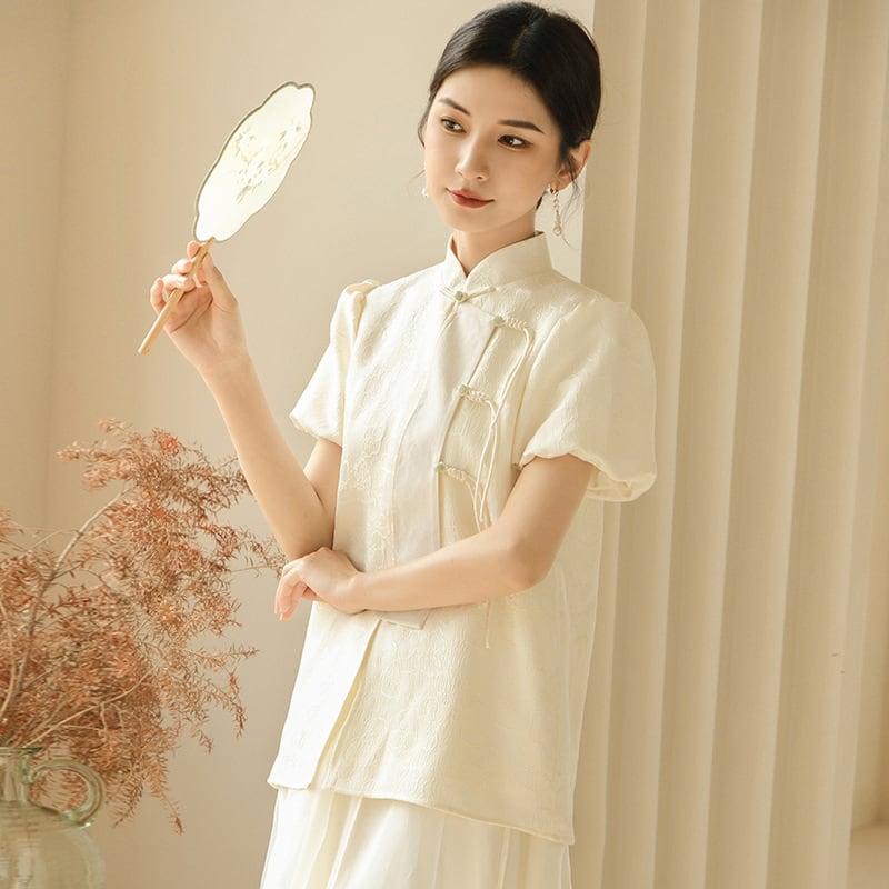 【初念シリーズ】★チャイナ風シャツ★ 半袖シャツ 夏服 エレガント 中華服 唐装 レトロ S M L XL
