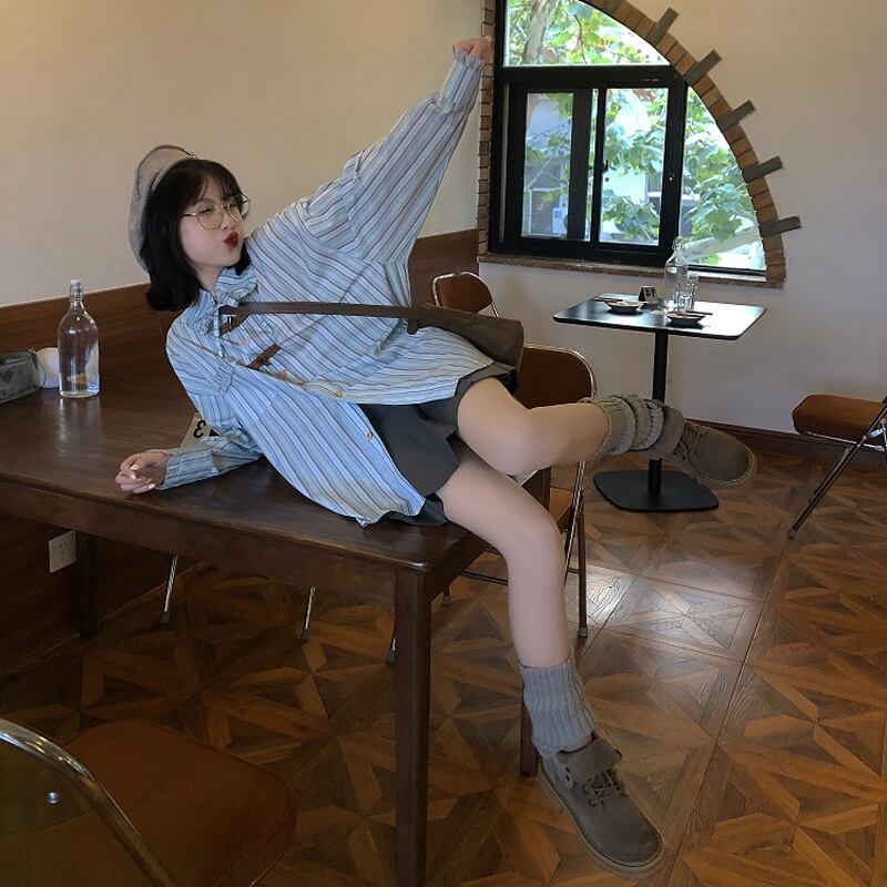 【TANGCHAOシリーズ】★シャツ★ 2color トップス 縦縞 縞模様 薄い 可愛い 合わせやすい デート 通勤