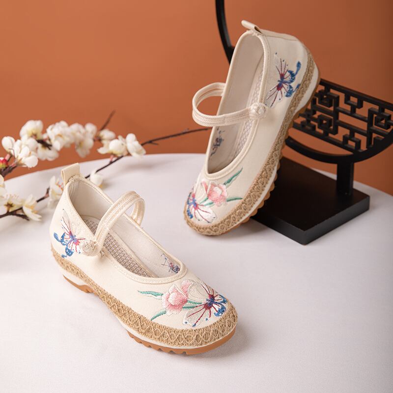 【BULUOYIシリーズ】★刺繍靴★ 2color チャイナ靴 チャイナドレス靴 ベージュ ブラック オリジナル