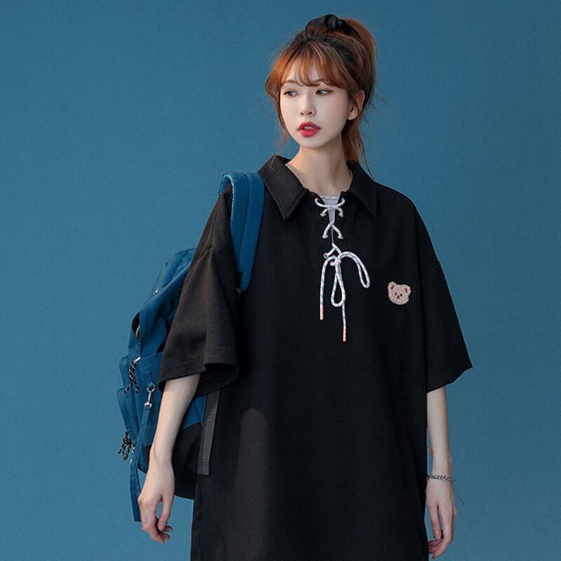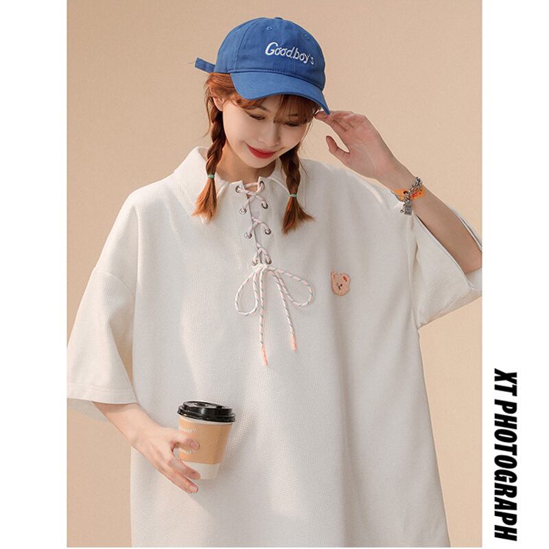 【藤伊曼シリーズ】★トップス★ 3color 半袖トップス ポロシャツ 男女兼用 メンズ クマ 熊 夏服 半袖トップス