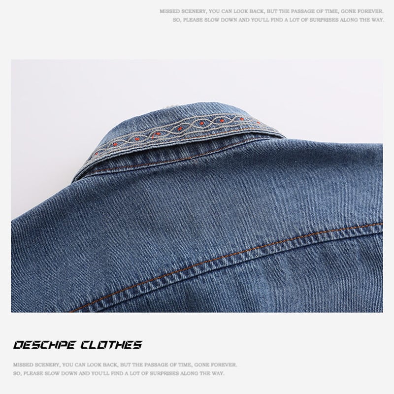 【DESCHPEシリーズ】★デニムシャツ★ トップス 半袖シャツ 男女兼用 メンズ 刺繍 カジュアル 個性的 ブルー 青 夏服