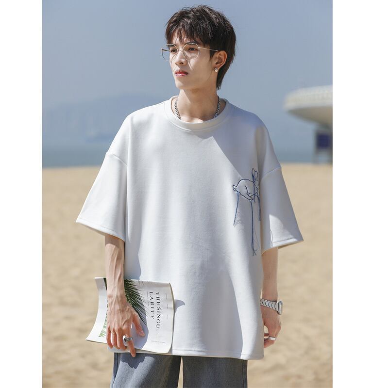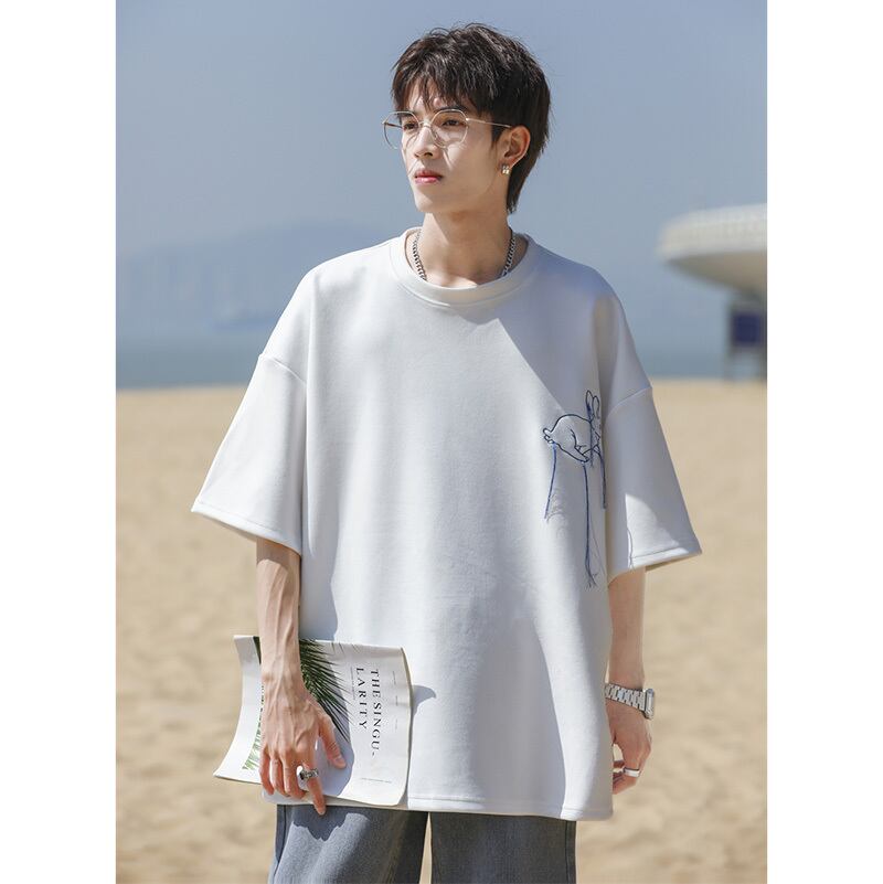 【MANYSTONシリーズ】★Tシャツ★ トップス 3color 男女兼用 メンズ 半袖 うさぎ 兎 ウサギ 白 緑 黒