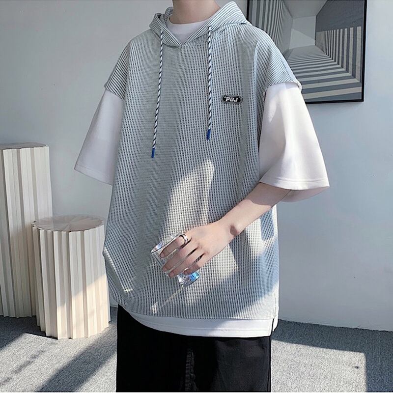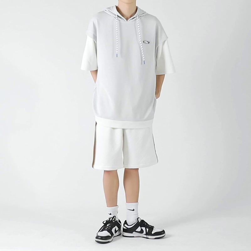 【KCSJシリーズ】★パーカー★ 2color トップス 男女兼用 メンズ 大きいサイズ 切り替え 合わせやすい 白 灰 黒