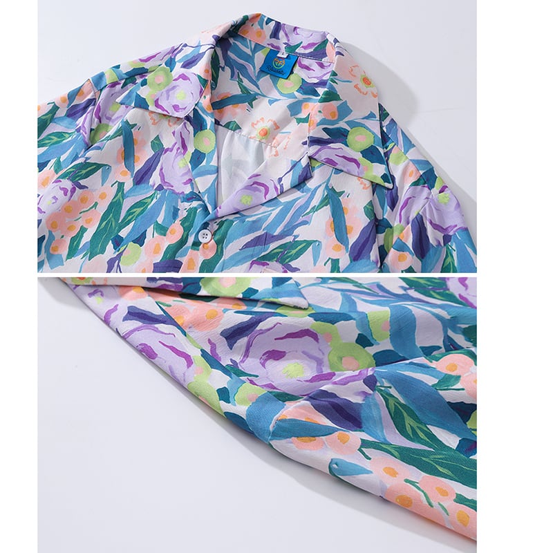【TRAVEL ISSUANCEシリーズ】★シャツ★ 2color ハワイ アロハシャツ プリント 油絵風 男女兼用 メンズ 可愛い