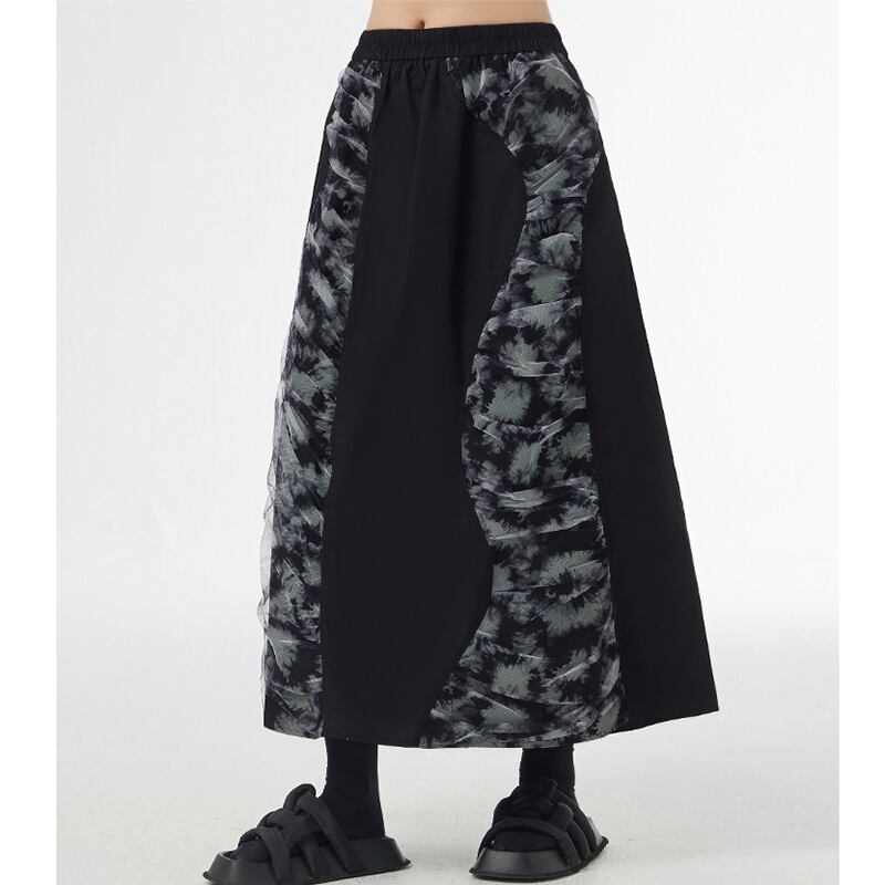 【YIDAOシリーズ】★スカート★ 2タイプ選択可能 普段着 ブラック 黒い 切り替え 花柄 チェック柄