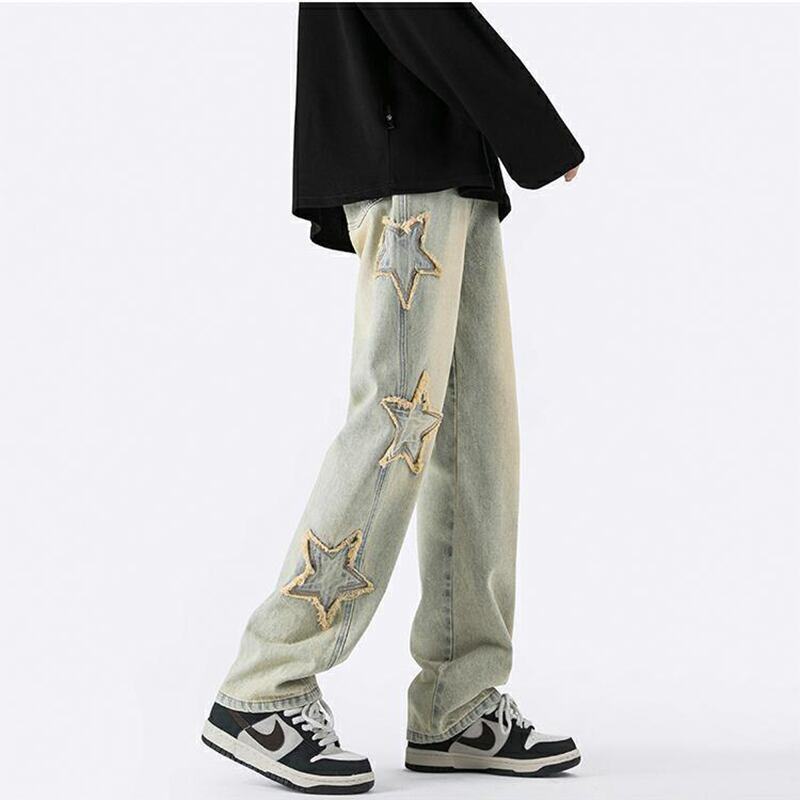 【Emeisaシリーズ】★デニムパンツ★ ボトムス ズボン 男女兼用 メンズ レトロ 星 ほし 大きいサイズ