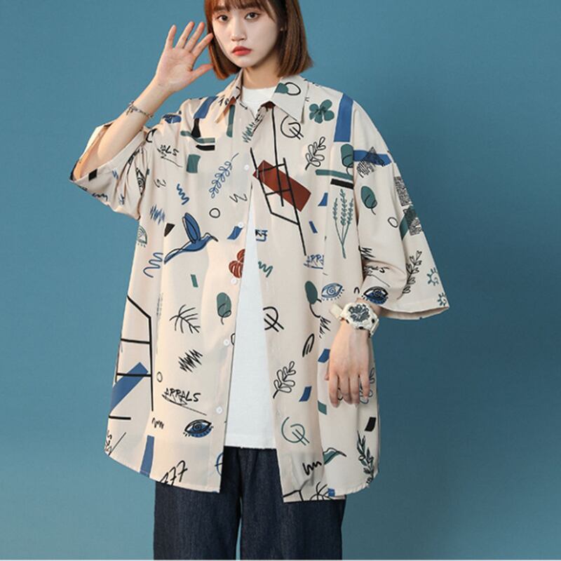 【CHAOMEICHENシリーズ】★半袖シャツ★ 3color トップス 男女兼用 メンズ 夏服 ベージュ ホワイト ブラック 落書き