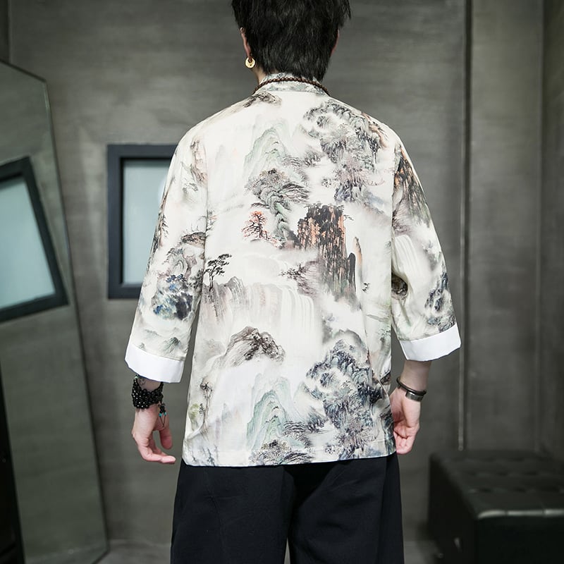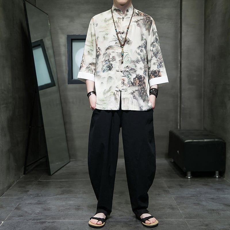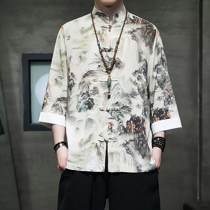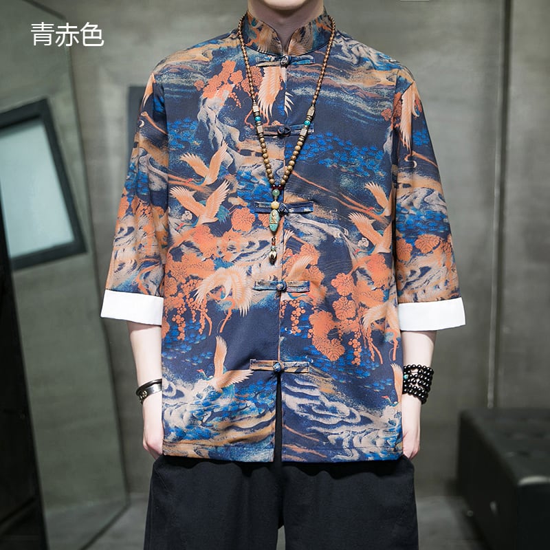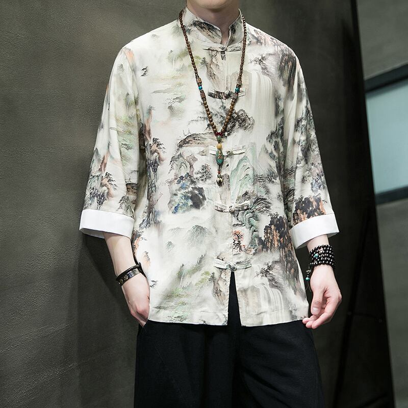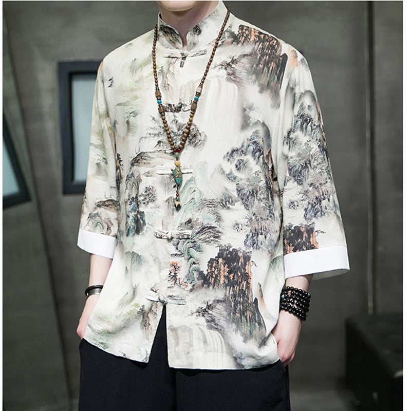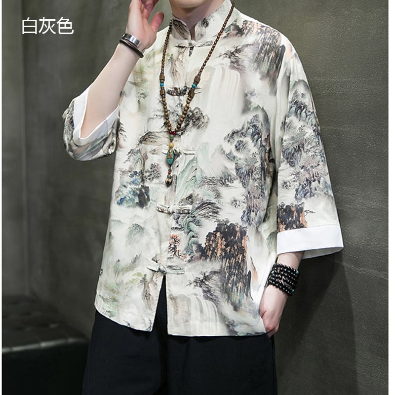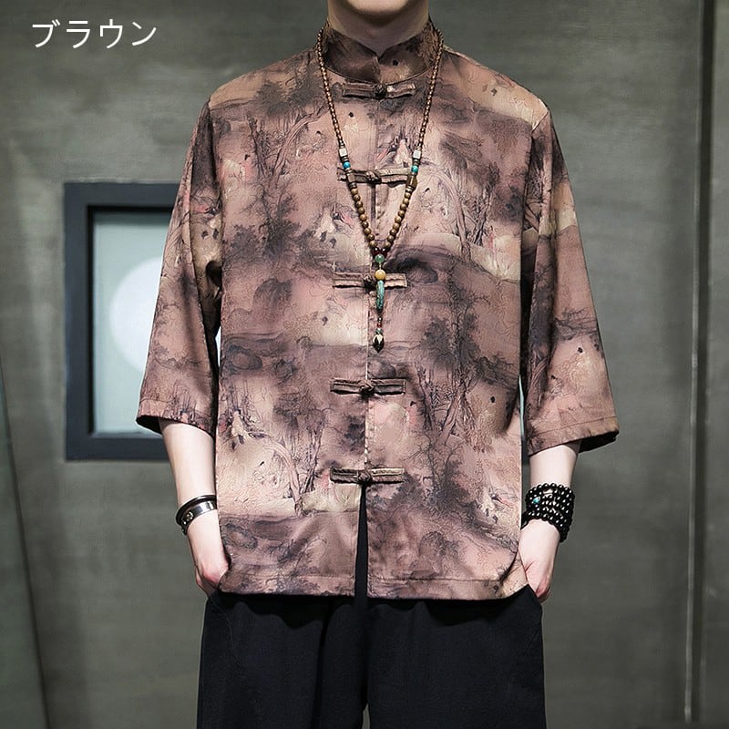 【JUNYIシリーズ】★チャイナ風シャツ★ トップス 6color 男女兼用 メンズ 大きいサイズ 水墨柄 山水柄