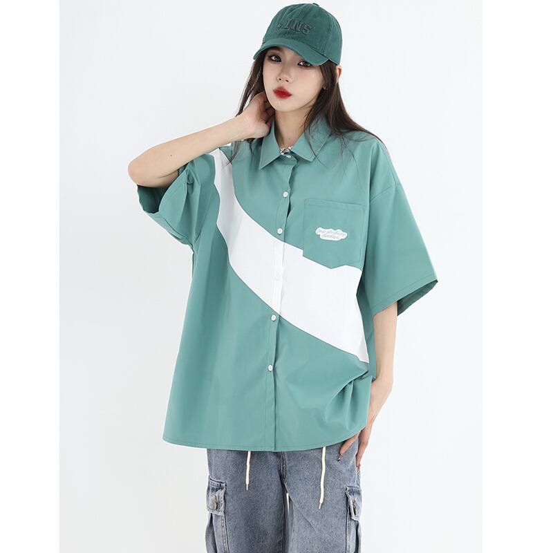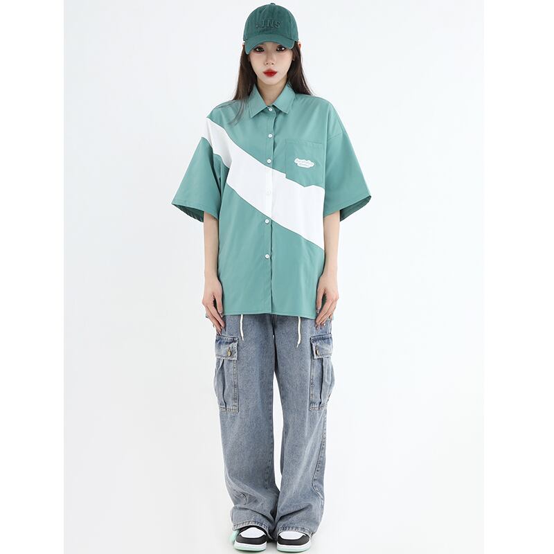 【Istudios シリーズ】★シャツ★ 2color トップス 配色 ファッション 男女兼用 メンズ 半袖トップス