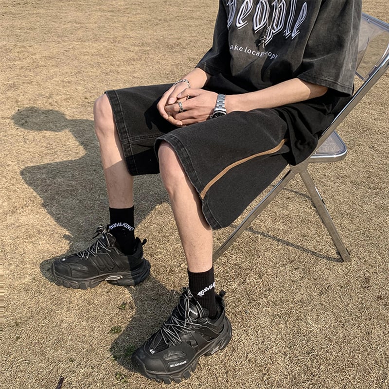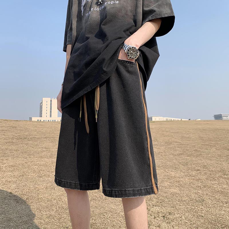 【QISHEシリーズ】★短パン★ デニムパンツ 2color カジュアル 男女兼用 メンズ シンプル 合わせやすい