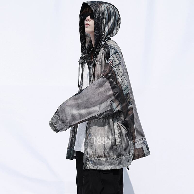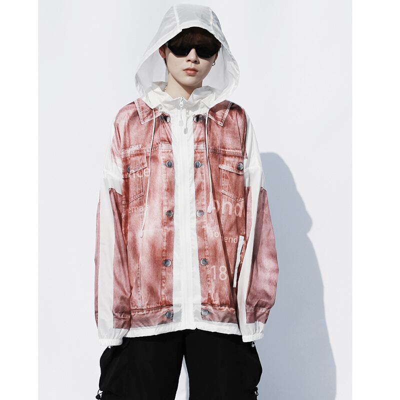 【SIN87シリーズ】★UVカット★ UPF50+ 2color 日差し防止 冷房対策 薄いアウター プリント ファッション 男女兼用 メンズ