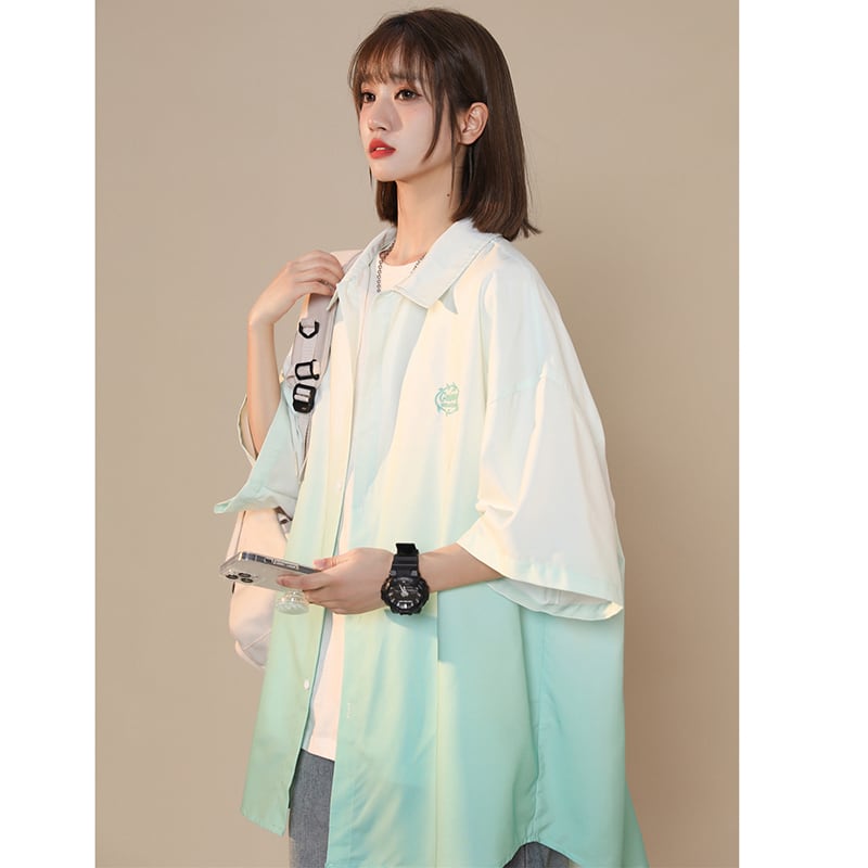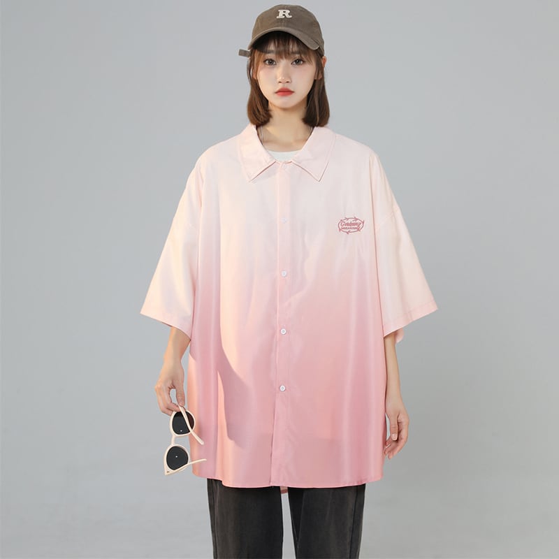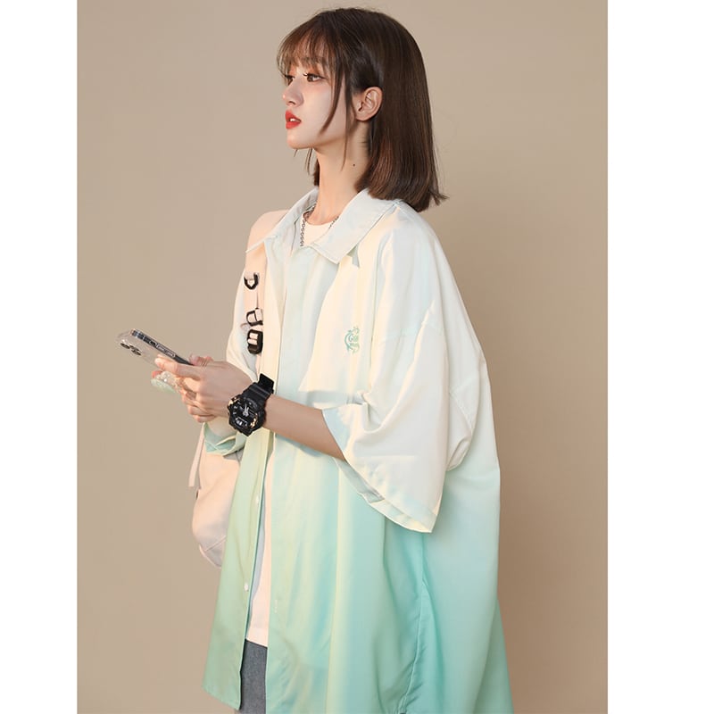【CHAOMEICHENシリーズ】★シャツ★ トップス 4color グラデーション 薄い 夏服 男女兼用 メンズ レトロ 青 緑 黒