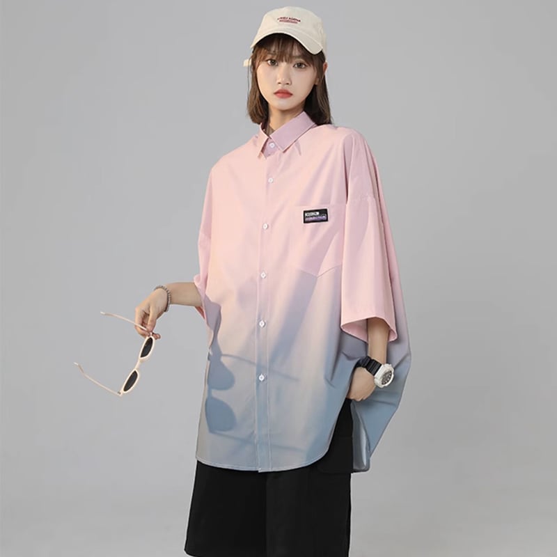 【CHAOMEICHENシリーズ】★シャツ★ トップス 3color グラデーション 薄い 夏服 男女兼用 メンズ 半袖シャツ