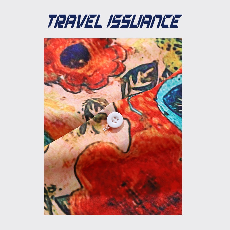 【TRAVEL ISSUANCEシリーズ】★シャツ★ ハワイ アロハシャツ 花柄 男女兼用 メンズ 海辺 半袖シャツ
