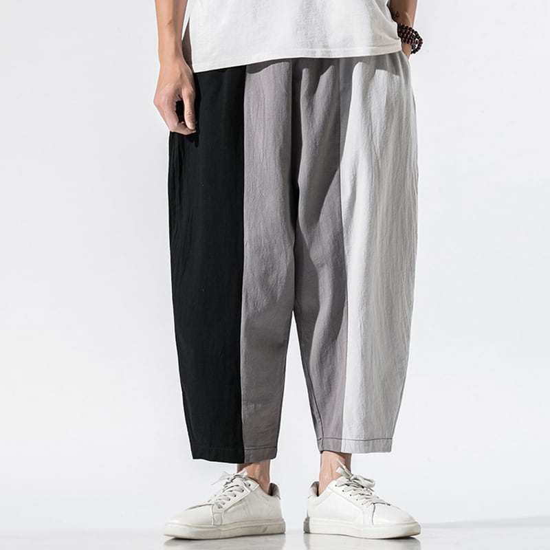 【蜀漢錦墨シリーズ】★チャイナ風ズボン★ 2color カジュアルパンツ 縦縞 男女兼用 九分丈 メンズ ゆったり 大きいサイズ