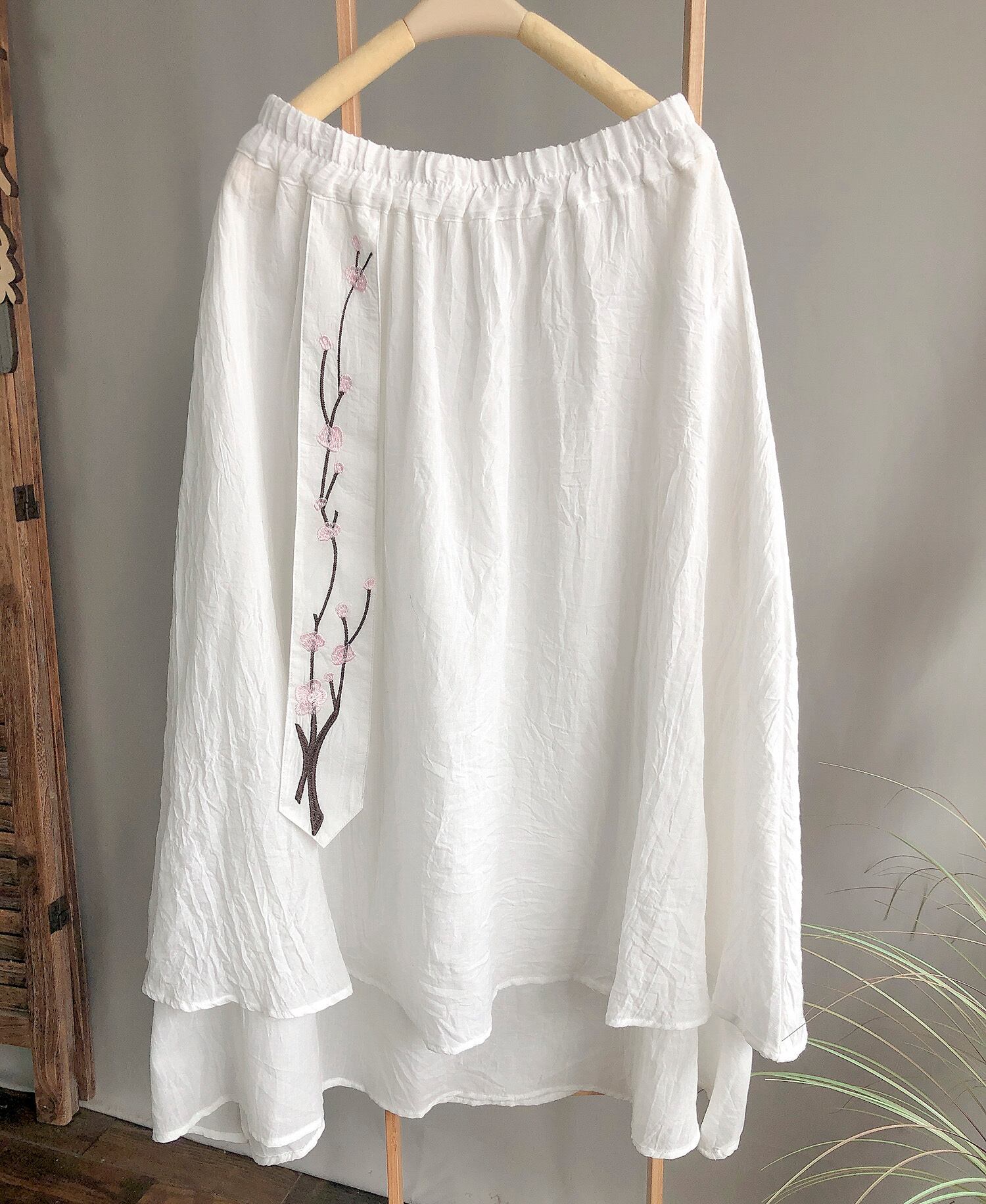 【幸福紀シリーズ】★チャイナ風スカート★ 4color ボトムス 刺繍 エスニック 白 青 緑 ウエストゴム