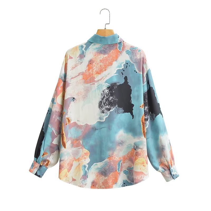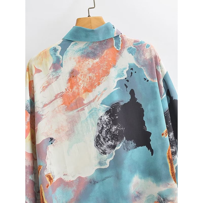 【KSLDシリーズ】★長袖シャツ★ 油絵風 冷房対策 日差し防止 レトロ S M L プリント 通勤 デート