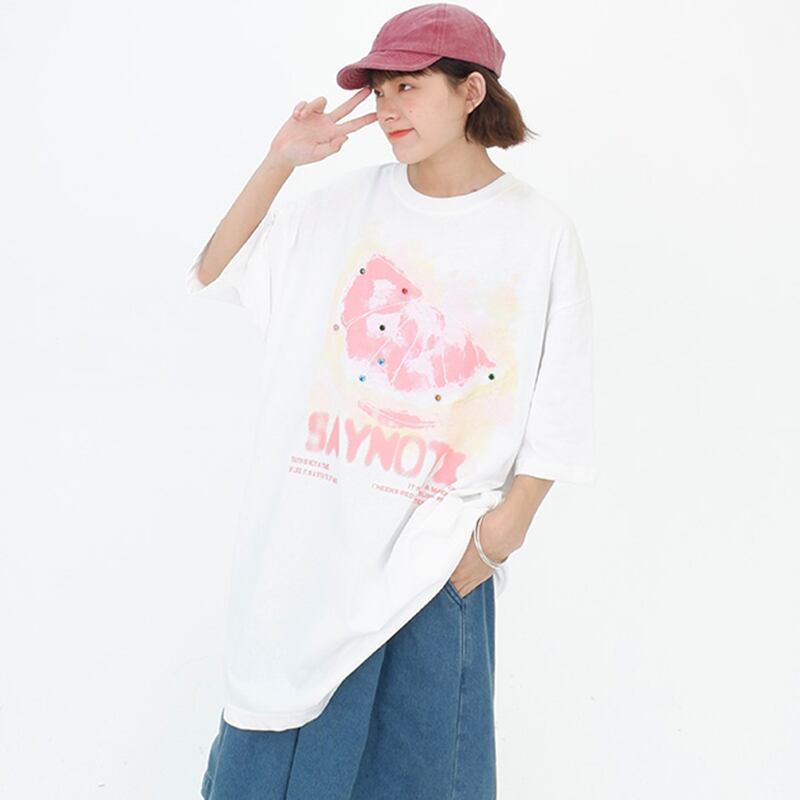 【PMFIVEEシリーズ】★Tシャツ★ 2color トップス 男女兼用 メンズ M L XL スイカ 可愛い 黒 白 ブラック ホワイト