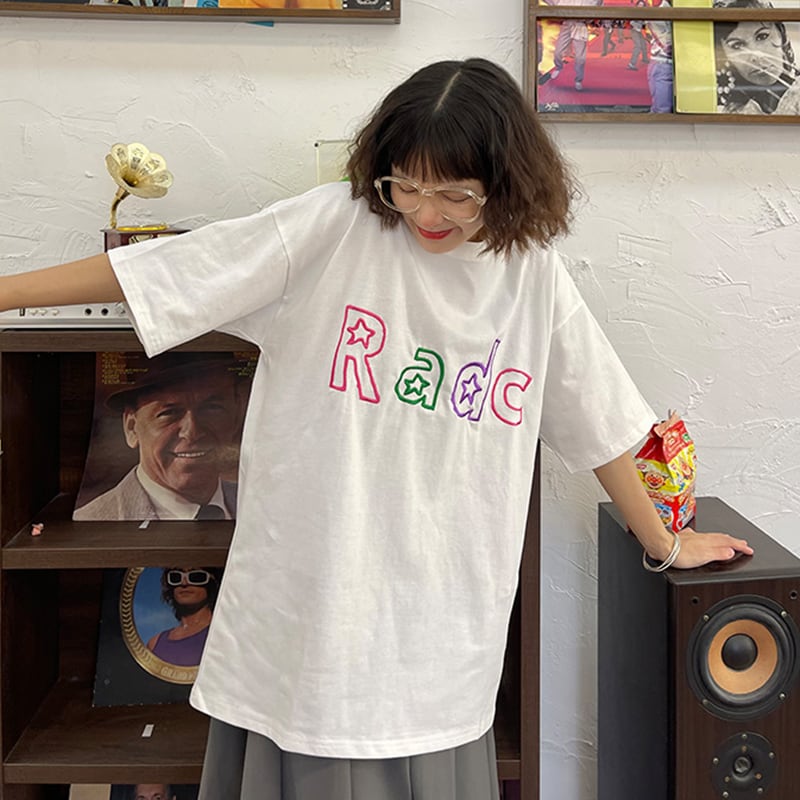 【PMFIVEEシリーズ】★Tシャツ★ 2color トップス 男女兼用 メンズ S M L XL 月 星 可愛い 黒 白 夏服