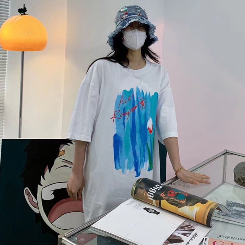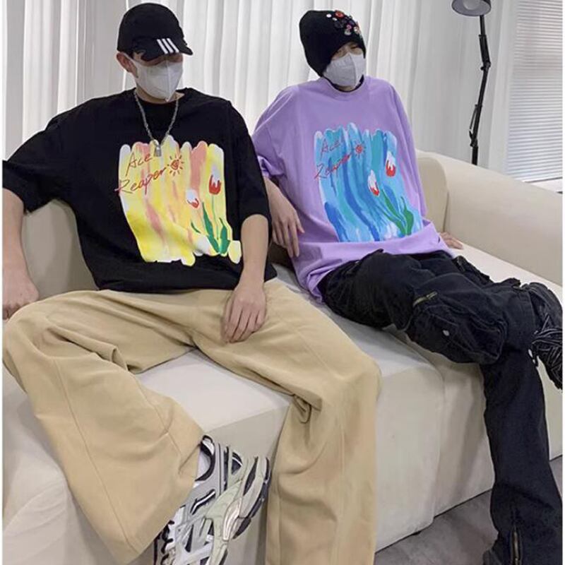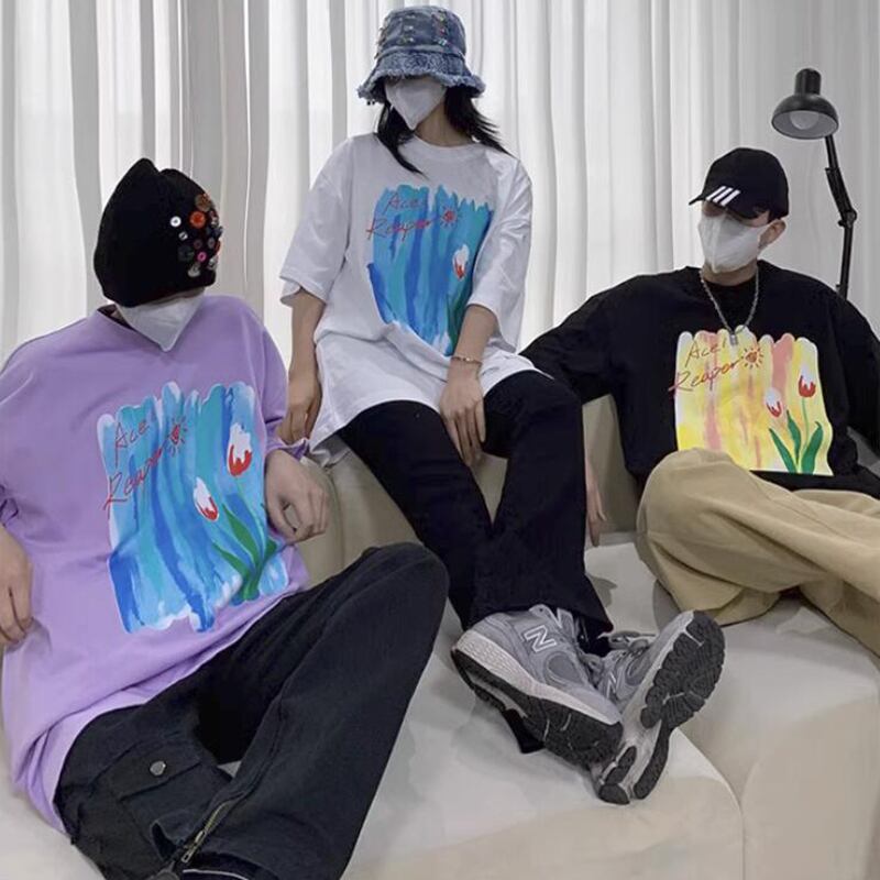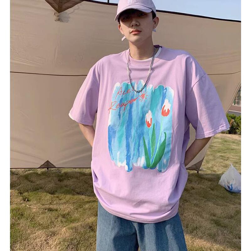 【PVシリーズ】★Tシャツ★ 3color トップス 油絵風 彩 夏服 半袖Tシャツ ホワイト ブラック パープル