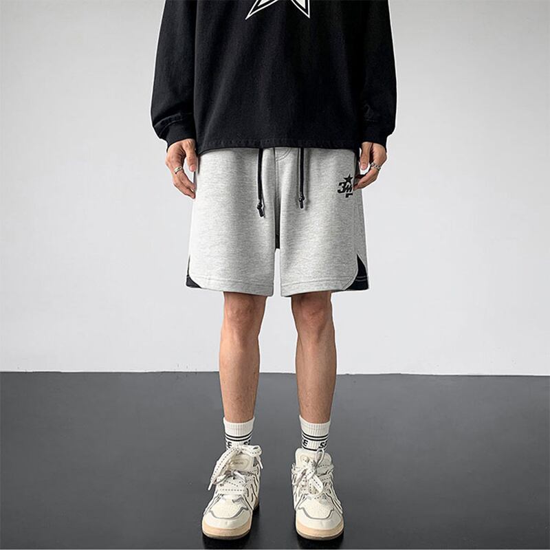 【Leonbinnoシリーズ】★短パン★ 2color 配色 スポーツ風 カジュアル ショートパンツ 男女兼用 メンズ 黒 ベージュ 灰