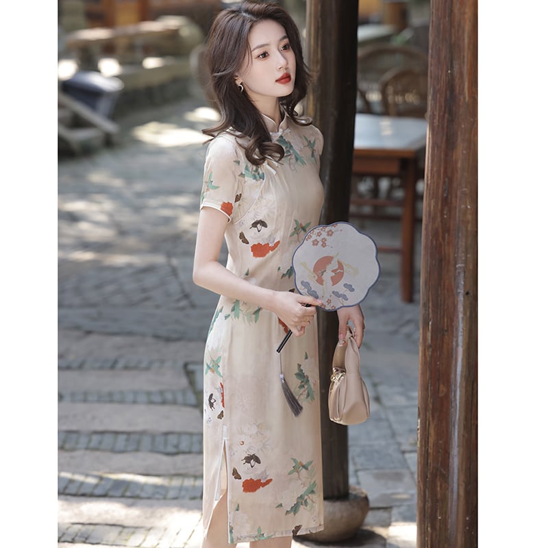 【紅彩衣シリーズ】★チャイナドレス★ ワンピース レトロ 女性らしい 花柄 スリム 気質アップ 結婚式 パーティー デート