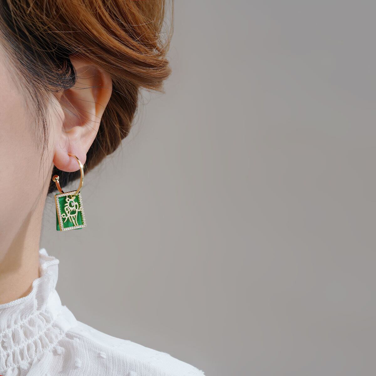 【DreamyQueenシリーズ】★チャイナ風耳飾り★ ピアス ペア レディース アクセサリー 気質アップ 個性的 マージャン 赤 緑