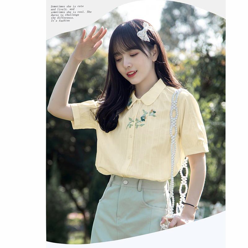 【MIANKAQIシリーズ】★シャツ★ トップス 刺繍 半袖シャツ シフォン S M L レトロ 花柄 デート 通勤
