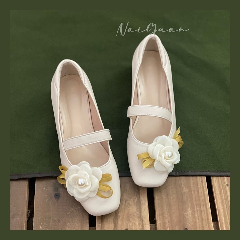 【Sweet Yシリーズ】★お靴★ サイズ35-40 シューズ お靴 チャイナ風靴 唐装 漢服 レトロ ベージュ 立体的な花