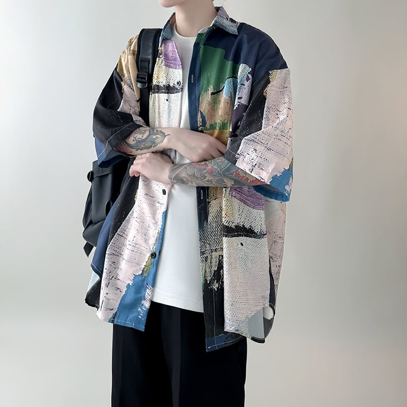 【NANSHIシリーズ】★半袖シャツ★ 2color カジュアル トップス シャツ 男女兼用 メンズ 配色 M L XL 2XL
