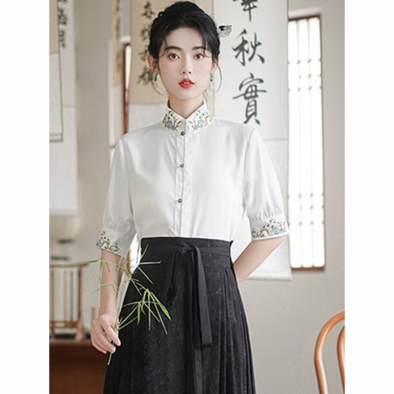 【EQDシリーズ】★チャイナ風シャツ★ 刺繍 トップス 半袖シャツ 漢服トップス 夏服 合わせやすい