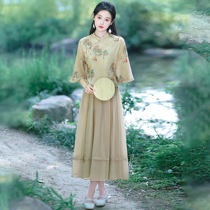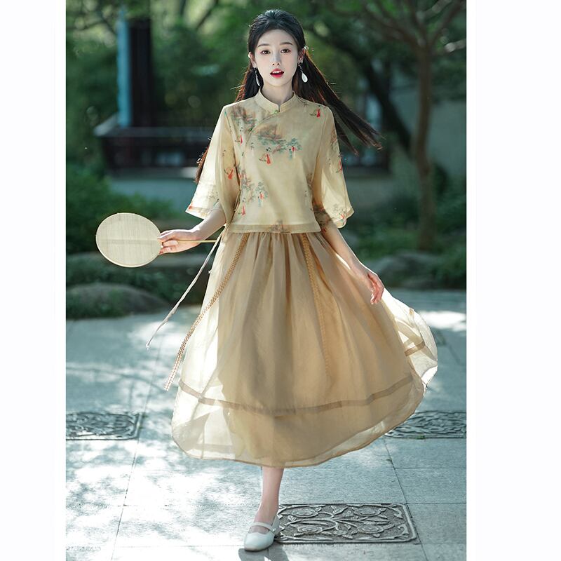 【EQDシリーズ】★チャイナ風セットアップ 単品注文★ シャツorスカート 水墨柄 デート 旅行 人物柄