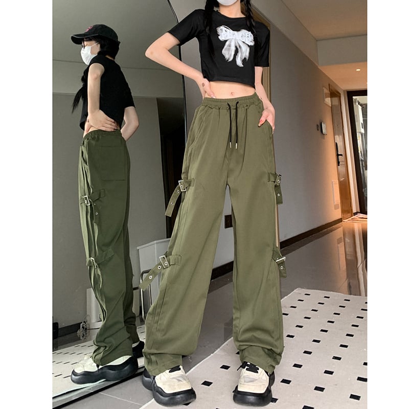 【MGJMシリーズ】★カジュアルパンツ★ 2color ボトムス ブラック グリーン 男女兼用 メンズ レトロ
