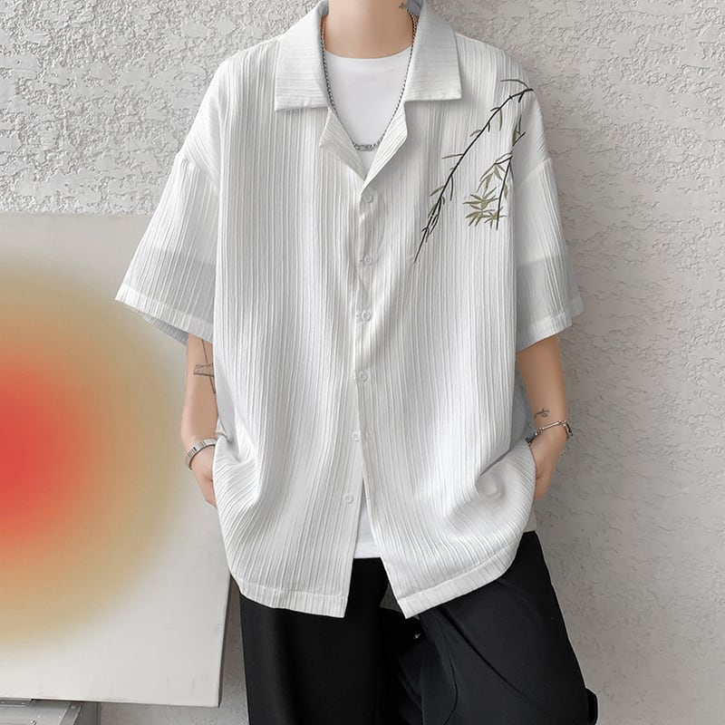 【ZHUIYIシリーズ】★シャツ★ 2color トップス 半袖シャツ 男女兼用 メンズ 大きいサイズ 竹柄 ブラック ホワイト