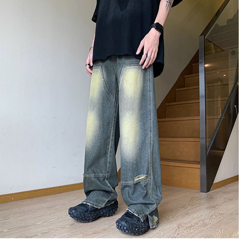【CHAOMEICHENシリーズ】★デニムパンツ★ ダメージ加工 ボトムス ズボン メンズ 大きいサイズ ブルー