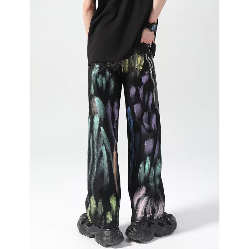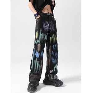 【CHAOMEICHENシリーズ】★デニムパンツ★ 2color 落書き ボトムス ズボン メンズ 大きいサイズ ホワイト ブラック