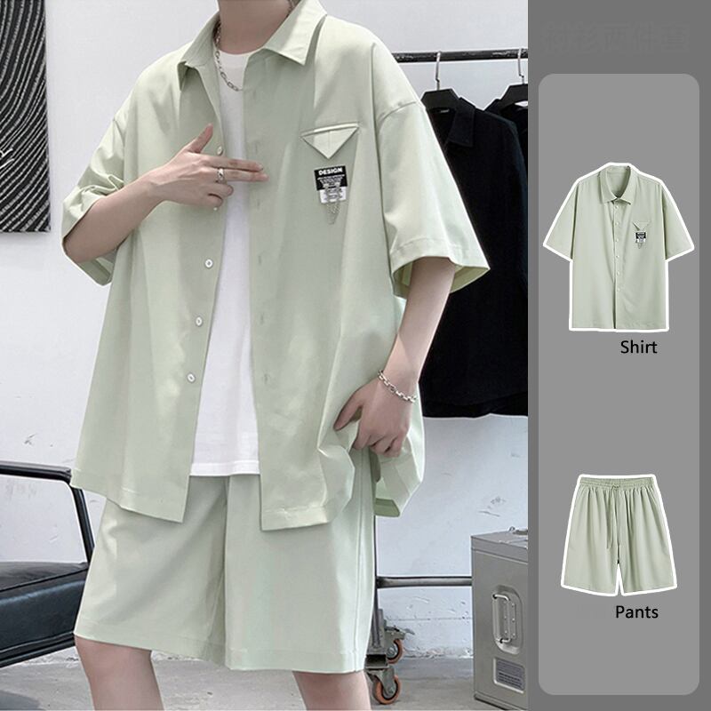 【YADISENシリーズ】★セットアップ★ シャツ+短パン 3color 男女兼用 メンズ グリーン ブラック ライトグレー