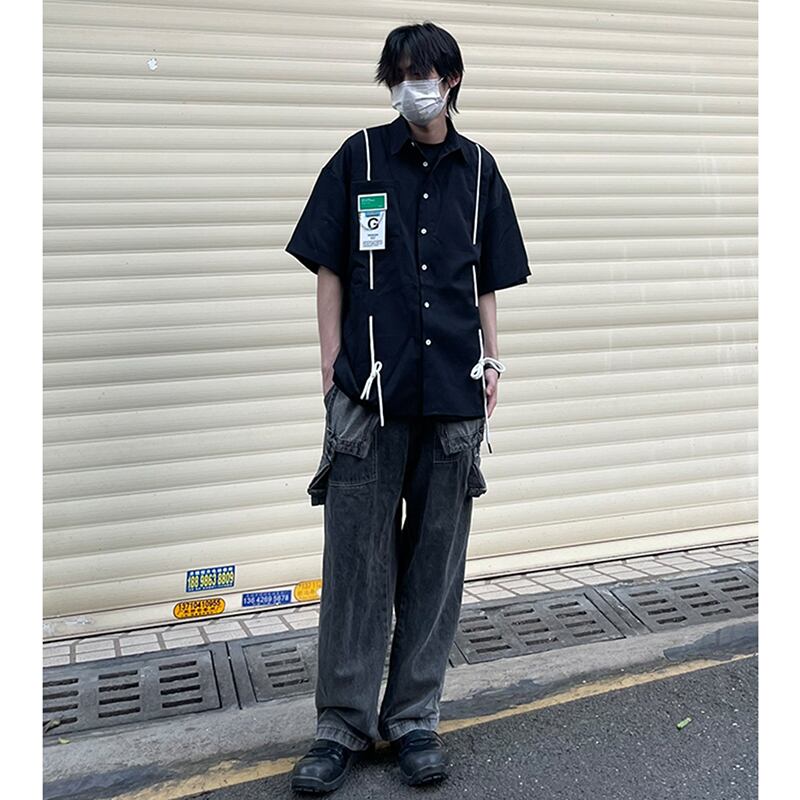 【NOONOZシリーズ】★シャツ★ 4color トップス 半袖シャツ 男女兼用 メンズ カジュアル ブラック ホワイト グリーン ブラウン