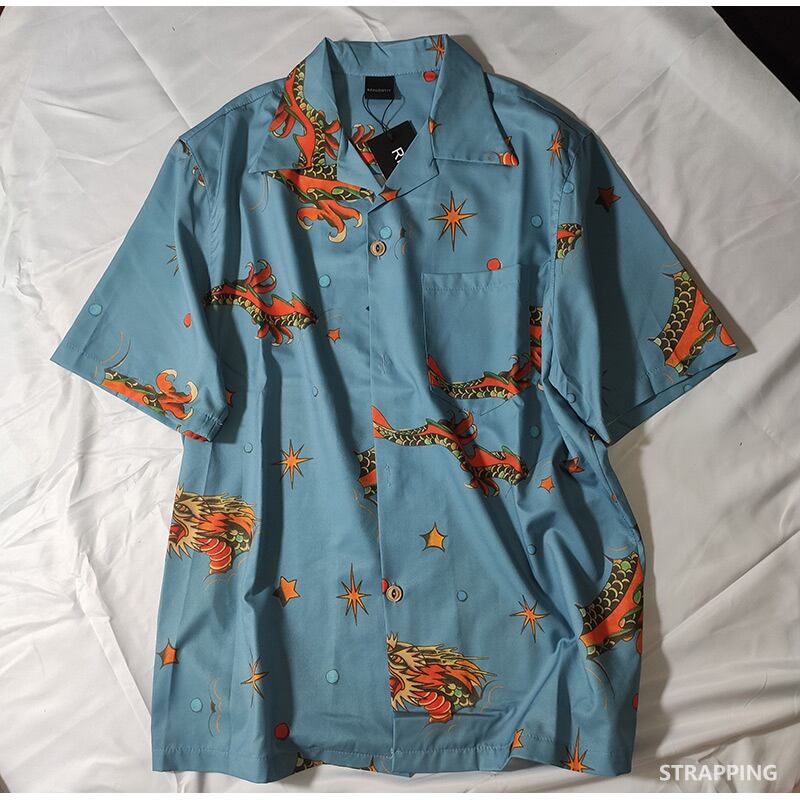 【STRAPPINGシリーズ】★シャツ★ 個性的トップス 半袖シャツ 男女兼用 メンズ 薄い 涼しい ブルー 青い